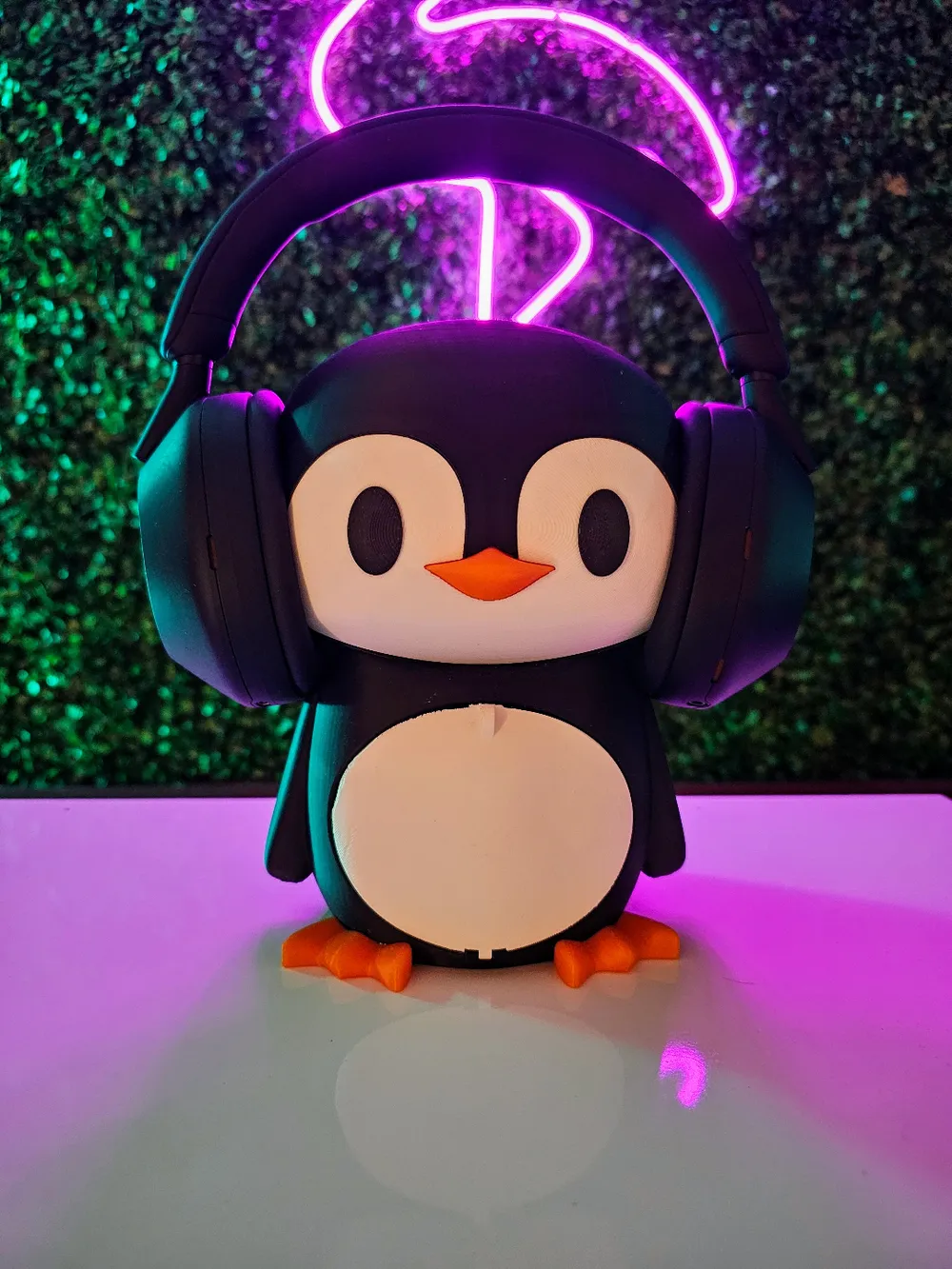 • Stylowy uchwyt na słuchawki: Niezależnie od tego, czy Twoje słuchawki odpoczywają na głowie, czy na ciele pingwina, stojak zapewnia ich stabilność i łatwy dostęp.